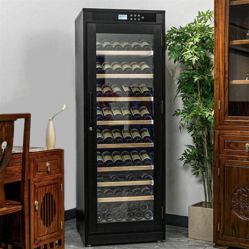 Soddisfa la tua passione per il vino con il nostro raffinato raffreddatore di vino in legno nero, controllato con temperatura intelligente e a più livelli, lavorato meticolosamente alla perfezione,Questo frigorifero di vino combina la tecnologia all' avanguardia con un' eleganza senza tempo., offrendo la soluzione definitiva per gli appassionati di vino per conservare e conservare le loro preziose collezioni di vini.